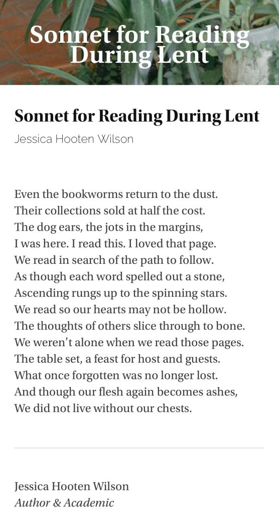 This comes from one of my favorite writers/thinkers: Jessica Hooten Wilson. If you do not know her work, I cannot recommend it highly enough.